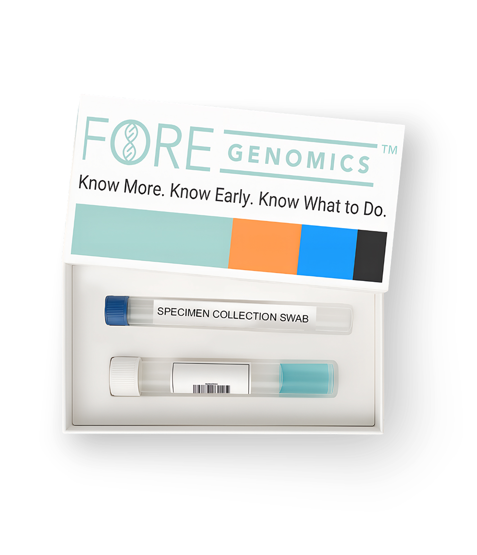 Our at-home genetic health screen helps you understand your child’s unique blueprint by analyzing their DNA for insights related to manageable health risks and how they may respond to certain medications. Fore gives you access to information about your child's health so you can stay one step ahead